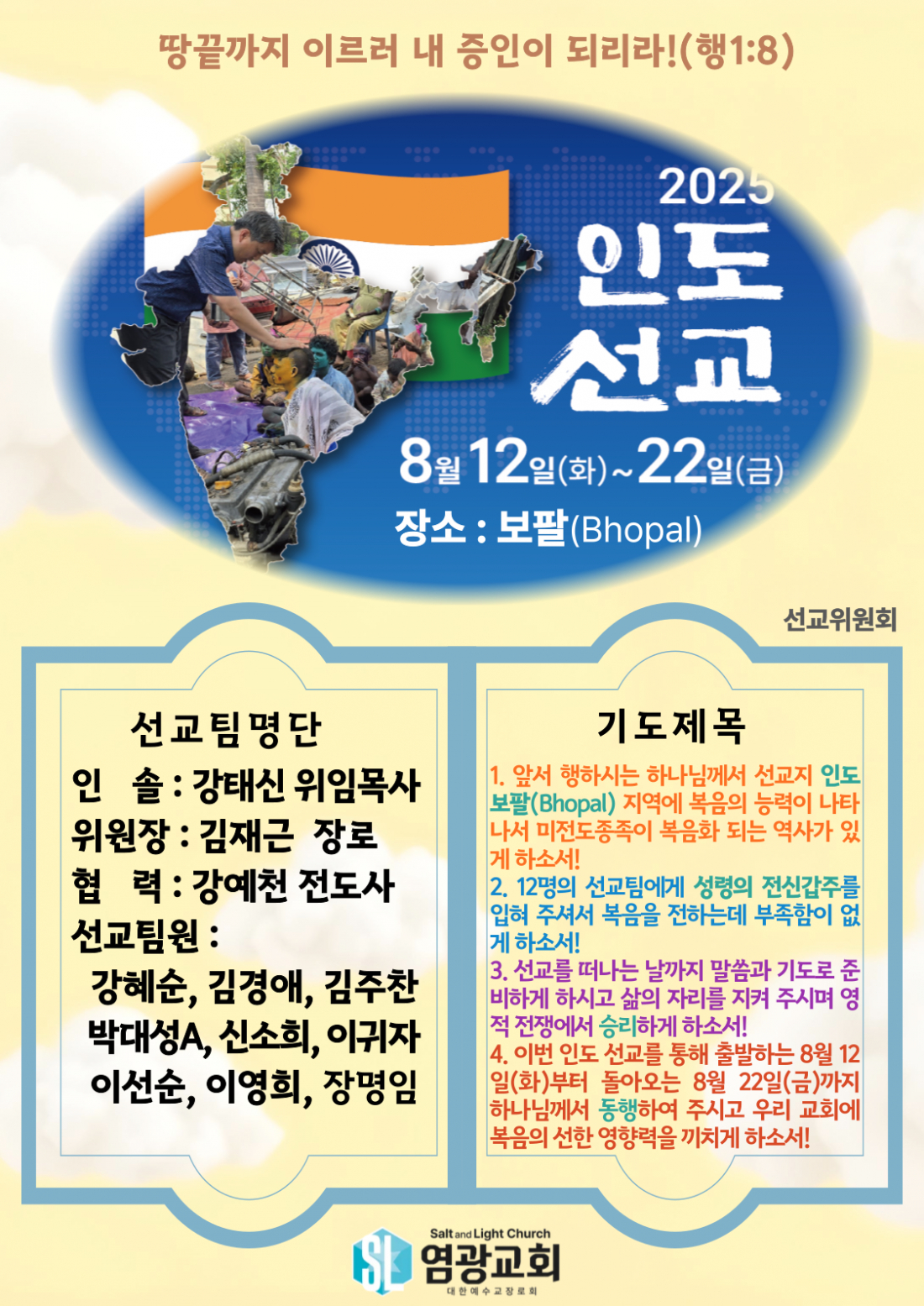 2025년 2기 인도선교 - 팀원, 장소, 기도제목