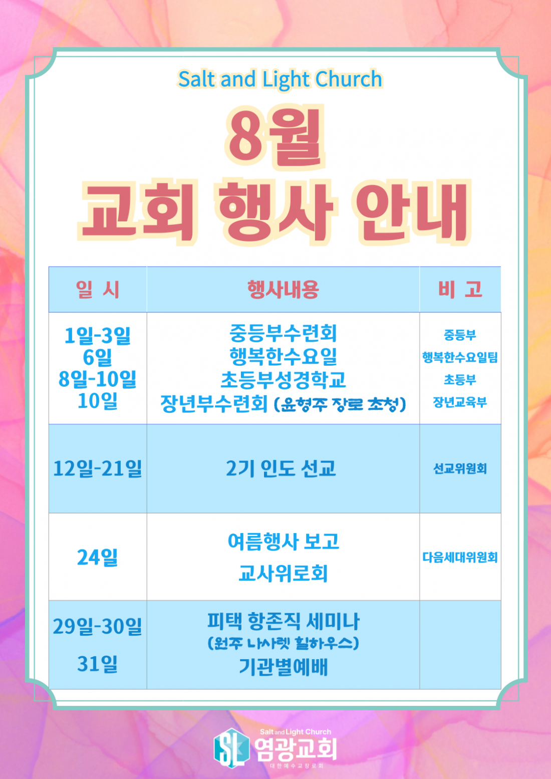 2025년 8월 교회 행사 안내