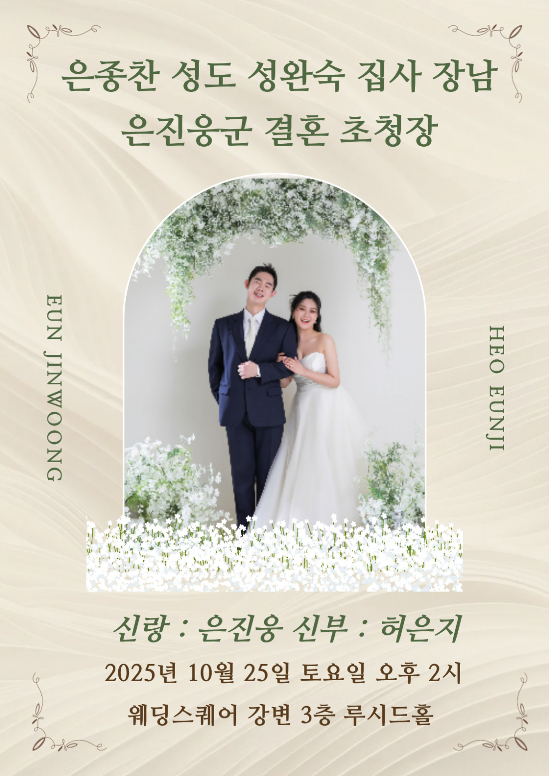 [결혼] 은진웅 군(은종찬 성도, 성완숙 집사 장남) 초청장 25.10.25(토)