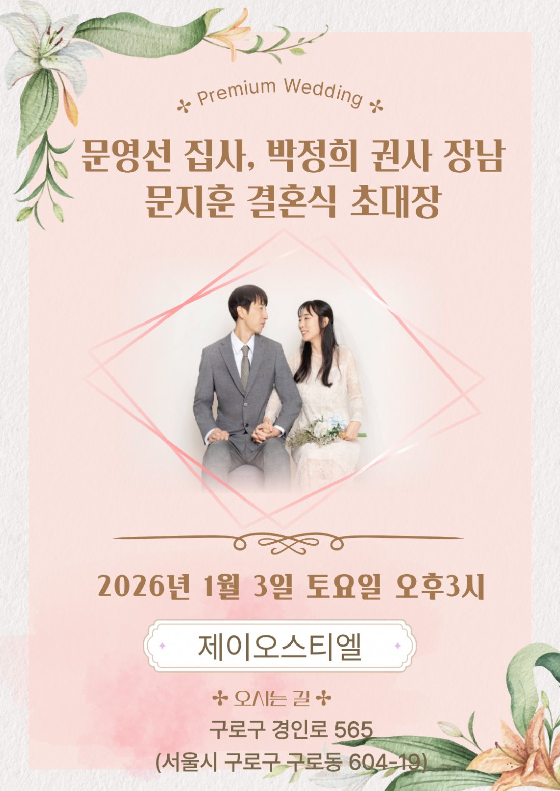 [결혼] 문지훈 (문영선 집사, 박정희 권사 장남) 결혼식 26.01.03(토)