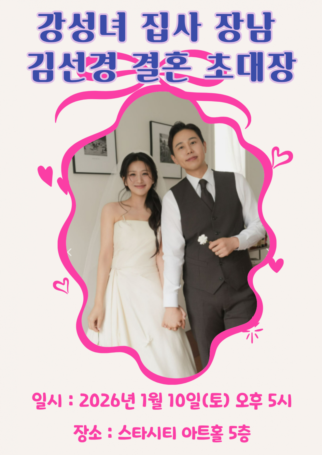 [결혼] 김선경 (강성녀 집사 장남) 결혼식 26.01.10 (토)