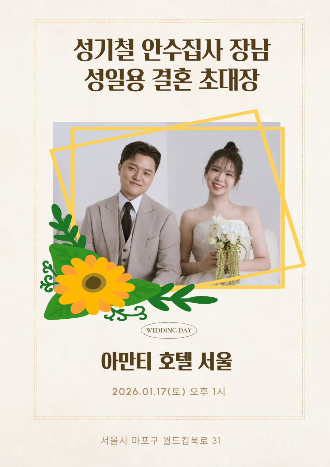 [결혼] 성일용 (성기철 안수집사 장남) 결혼식 26.01.17(토)