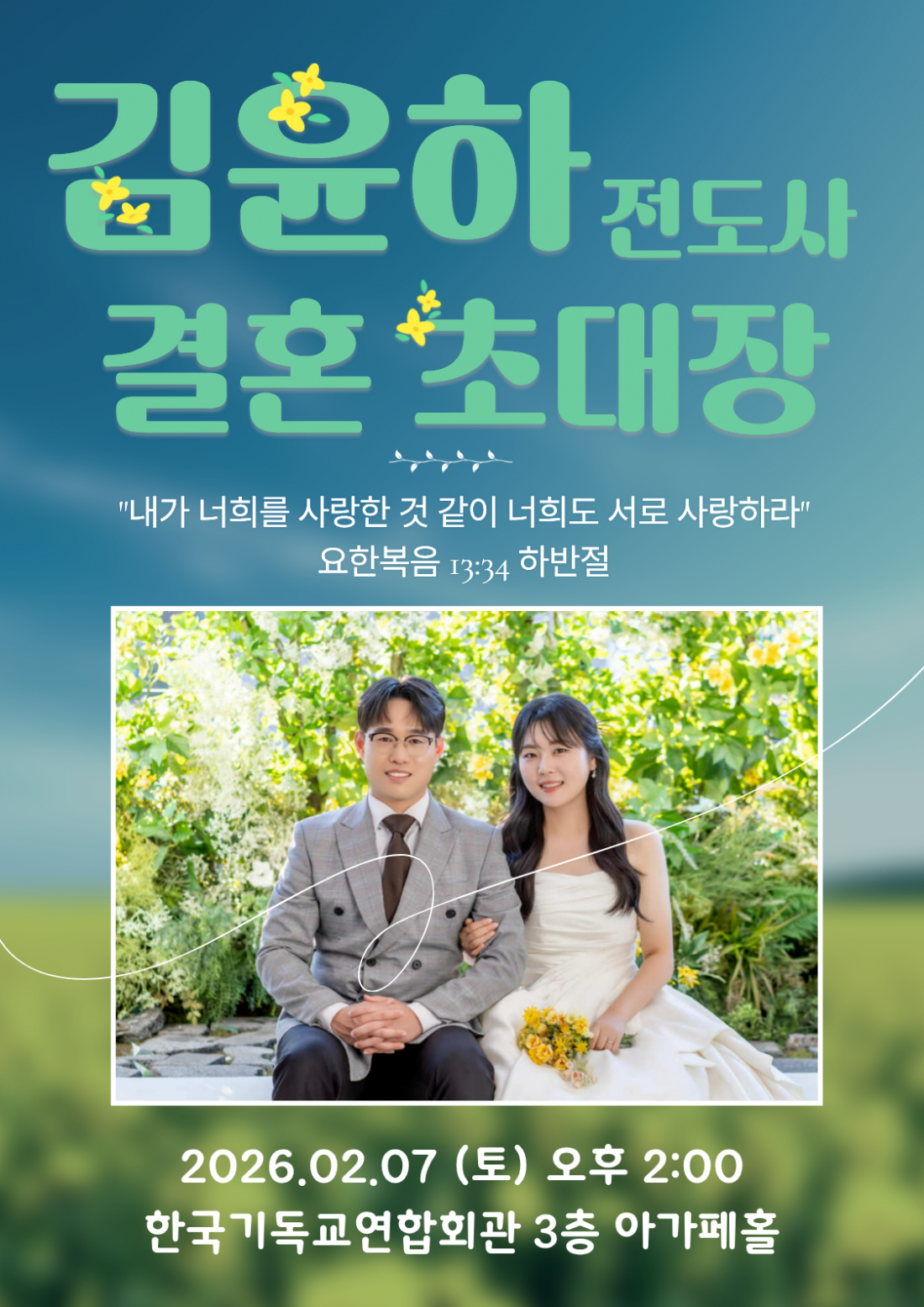 [결혼] 김윤하 (고등부 전도사) 결혼식 26.02.07(토)