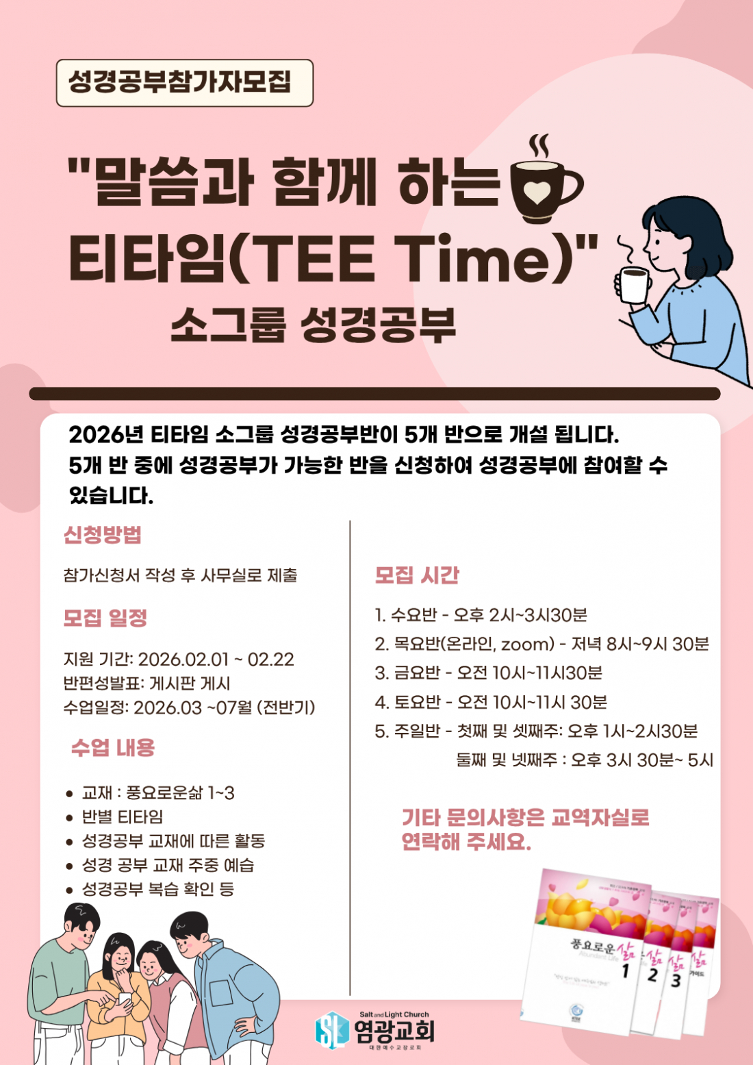 [모집] 말씀과 함께하는 티타임 소그룹 성경공부반 모집