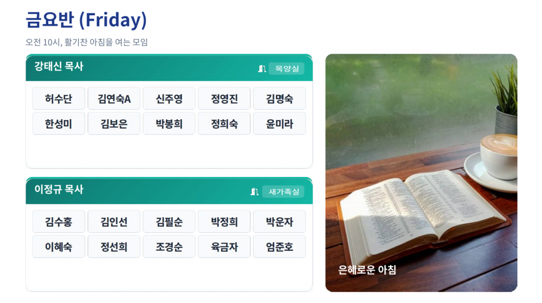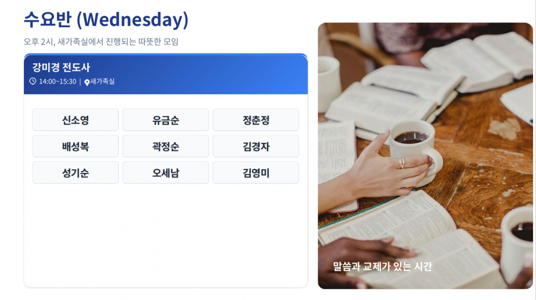 말씀과 함께하는 티타임 성경공부 반편성표